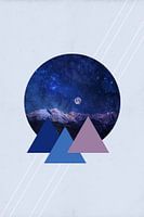 Starry Night in the Mountains is een abstracte print van bergen in de nacht. Een prachtige sterrenhemel waarin diverse tinten blauw en paars terug komen. Deze kleuren zijn ook gebruikt voor de driehoeken die een abstracte weergave zijn van de bergen.