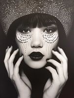 Een zwart/wit portret van eeen aziatische vrouw, geïnspireerd op de melkweg.