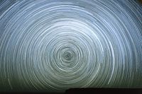 Deze indrukwekkende startrail-foto is gemaakt tijdens een heldere, maanloze nacht in Namibië - een van de beste plaatsen ter wereld voor astrofotografie. Door veel afzonderlijke opnamen in lagen op te nemen, ontstond dit beeld, dat de beweging van de sterren aan de hemel in fascinerende banen weergeeft.