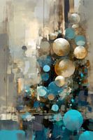 Fantasie mixed media in voornamelijk blauw,turquoise,goud en bruin tinten op canvas.