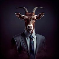 Een uniek digitaal kunstwerk van een super modieuze Geit in een strakke pak. Het perfecte voorbeeld van een mooie balans tussen statig en speels. Kunst met een twist op zijn best!