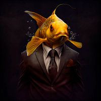Statig portret van een Goudvis in een chic pak van Maarten Knops