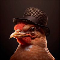 De look & feel van een stijlvol statieportret...maar dan van een haan met bijpassende hoed.