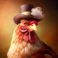 De look & feel van een stijlvol statieportret...maar dan van een haan met bijpassende hoed.
