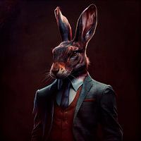 Een uniek digitaal kunstwerk van een super modieuze Haas in een strakke pak. Het perfecte voorbeeld van een mooie balans tussen statig en speels. Kunst met een twist op zijn best!