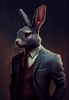 Een uniek digitaal kunstwerk van een super modieuze Haas in een strakke pak. Het perfecte voorbeeld van een mooie balans tussen statig en speels. Kunst met een twist op zijn best!