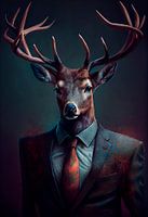 Een uniek digitaal kunstwerk van een super modieus Hert in een strakke pak. Het perfecte voorbeeld van een mooie balans tussen statig en speels. Kunst met een twist op zijn best!
