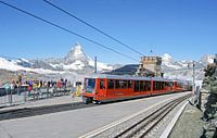 Koop de foto Station Gornergrat met zicht op de Matterhorn van Kees van den Burg als print op canvas, aluminium dibond, (ingelijste) fotoprint, behang en ArtFrame. Voor jou op maat geprint in Fine-Art kwaliteit.