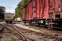 Goederenwagons op het verlaten spoor van station Hombourg in België