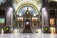 Het Station van Antwerpen helemaal leeg net voor sluitingstijd. Een unieke plaat voor aan de muur.