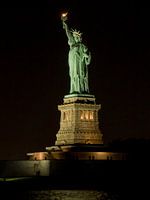 Een nacht opname van het Vrijheidsbeeld genomen vanaf een rondvaarboot.