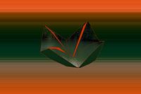 Collage en tekening, landschap in groen en oranje.
