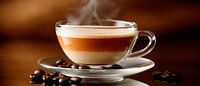 Koop de foto Steamkoffie in een elegant kopje van Poster Art Shop op canvas, aluminium dibond, (ingelijste) fotoprint, behang en ArtFrame, op maat geprint in Fine-Art kwaliteit.