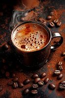 Steamkoffie in een rustieke omgeving van Poster Art Shop