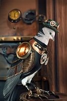 Koop dit vogel kunstwerk Steampunk Duif: Vrede en Technologie in een Futuristische Setting van Elianne van Turennout op canvas, aluminium dibond, (ingelijste) fotoprint, behang en ArtFrame, op maat geprint in Fine-Art kwaliteit.