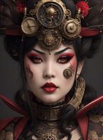 Steampunk Geisha a portret in rood en koper kleuren een mooi abstract beeld voor aan de muur een one of a kind soort portret gegenereerd door ai.