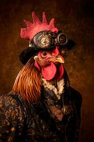 Portret van een haan in een steampunk outfit, in de stijl van fantasy met realistische details.