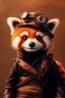 Portret van een rode panda in een steampunk outfit, in de stijl van fantasy met realistische details.