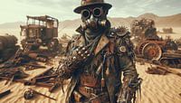 Deze krachtige steampunkillustratie toont een nomadische steampunkkrijger die door een ruig, post‑apocalyptisch landschap trekt. De wereld om hem heen bestaat uit verlaten industriële structuren, roestige machines en zandstormen die het zicht vervormen. De krijger straalt vastberadenheid en technische vindingrijkheid uit — een echte…