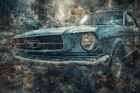Het oorspronkelijke motief blijft als een rustige, duidelijk herkenbare kern, terwijl de achtergrond volledig is opgelost en getransformeerd in een abstracte, stedelijke structuur.