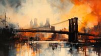 "Stedelijke Reflecties" is een schilderij dat de bruisende energie en de complexe structuur van de stad vastlegt. De iconische skyline, met prominente gebouwen en de beroemde brug, is uitgevoerd in een palet van monochrome en aardetinten, gehuld in een mist van stedelijke mystiek. De reflectie in het water suggereert een parallelle…