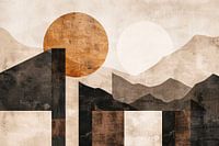 Dit stijlvolle ontwerp, gekenmerkt door strakke lijnen en subtiele kleuren, is een moderne weergave van een stedelijke skyline tegen een achtergrond van golvende heuvels en grootschalige cirkels die zon en maan voorstellen. De combinatie van geometrische vormen en aardse tinten straalt een rust uit die bijdraagt aan een sfeer van kalmte en balans in elke ruimte. Het is een perfecte aanvulling voor liefhebbers van minimalistische kunst die waarde hechten aan zowel esthetiek als symboliek. Deze artistieke creatie nodigt de kijker uit om de harmonie tussen natuur en architectuur te overpeinzen, en is daarmee niet alleen een visueel aantrekkelijk stuk, maar ook een gespreksstarter.