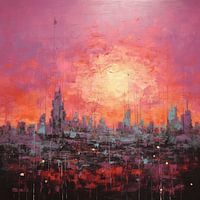Dit schilderij is een betoverende mix van kleuren en vormen die het stadslandschap herdefinieert. Het nodigt kijkers uit om de stad te zien door een kaleidoscopische lens, waar abstracte vormen en levendige tinten een dynamisch en steeds veranderend stadsgezicht creëren.