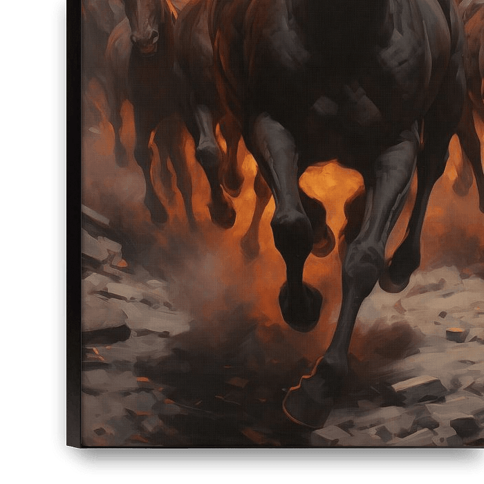 "Stedelijke Vuurstorm: Galop in de Gloed" is een meeslepend digitaal schilderij dat de kracht en onstuimigheid van paarden loslaat binnen de verstikkende grenzen van een stadsomgeving. De voorste paarden, majestueus en woest, lijken uit de vlammen te komen, hun manen wild in de lucht terwijl ze een weg banen door de smalle steegjes van…