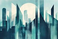 Een fascinerend samenspel van geometrische vormen en zachte kleuren voert de kijker mee naar een dromerig stadslandschap. Hoge, schaduwrijke torens rijzen op, terwijl een zachte lichtcirkel de achtergrond verlicht. Dit moderne kunstwerk is perfect voor een woonkamer, waar het gesprekken stimuleert en een creatieve sfeer creëert.