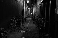 Een steeg in de binnenstad van Utrecht in de nacht. Foto is genomen op een koude winternacht.