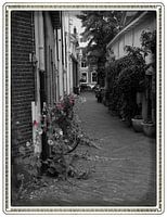 Dit steegje of straatje is te vinden in Amersfoort. en wel in de oude stad. een haast klassiek plaatje in zwart-wit met een heel klein beetje kleur. het zijn die paar kleurpuntjes die het werk die eigen twist geven.