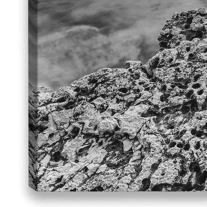 Rotsen aan de kust in zwart/wit
