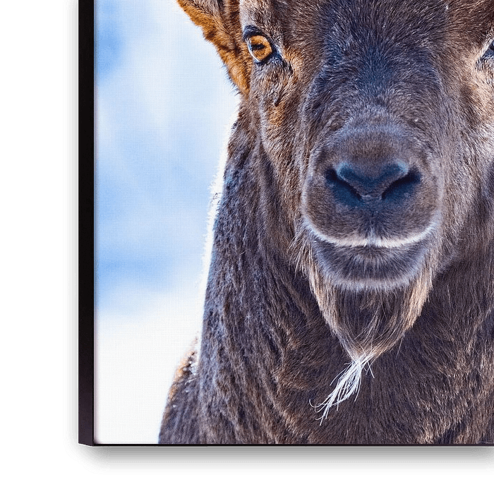 Koop dit landschapskunstwerk Steenbok frontaal portret van Sam Mannaerts op canvas, aluminium dibond, (ingelijste) fotoprint, behang en ArtFrame, op maat geprint in Fine-Art kwaliteit.