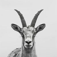 Dit fascinerende zwart-wit portret van een steenbok toont de trotse houding en indrukwekkende horens van dit majestueuze dier. De strakke lijnen en fijne details van de vacht en hoorns benadrukken de natuurlijke elegantie en kracht van de steenbok. Dit kunstwerk is perfect voor natuurliefhebbers en kunstliefhebbers en geeft elke kamer een krachtige maar elegante uitstraling.