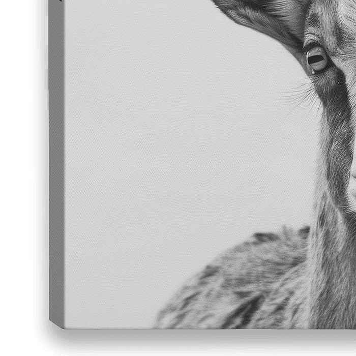 Dit fascinerende zwart-wit portret van een steenbok toont de trotse houding en indrukwekkende horens van dit majestueuze dier. De strakke lijnen en fijne details van de vacht en hoorns benadrukken de natuurlijke elegantie en kracht van de steenbok. Dit kunstwerk is perfect voor natuurliefhebbers en kunstliefhebbers en geeft elke kamer…