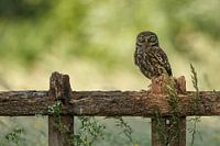 Een steenuiltje dat in het late zonlicht de omgeving bekijkt