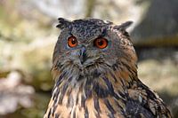 De oehoe ... een portret ... Met zijn grote oranje ogen kijkt hij aandachtig naar zijn omgeving.