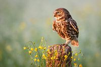 Dit kleinste uiltje van Nederland kon ik mooi op de foto zetten in het laatste licht van de dag. Hier kwam hij gelukkig nog even mooi op een paaltje zitten.