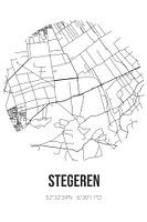 Zwart-witte landkaart, stratenplan of plattegrond van Stegeren. Stegeren is gelegen in de gemeente Ommen, provincie Overijssel. Op de stadskaart zijn alle openbare wegen in Stegeren opgenomen. Verder is de kaart voorzien van de coördinaten van het centrum van Stegeren.