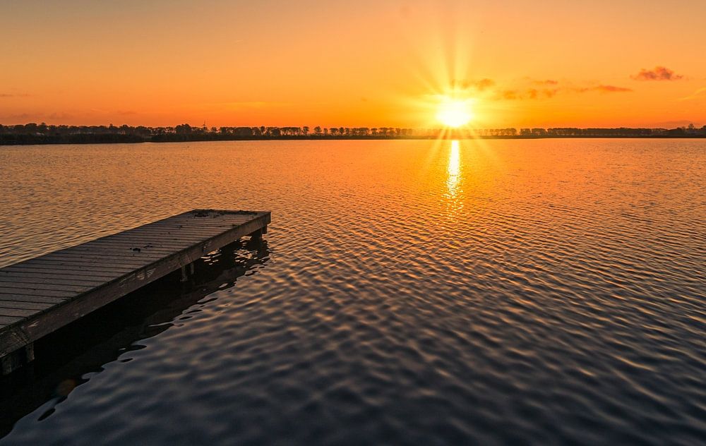 Bij deze foto leidt de steiger je mooi de foto in naar de zonsopkomst