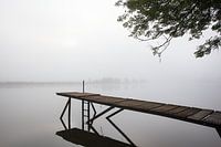 Steiger in de Maas bij mist in Noord Limburg