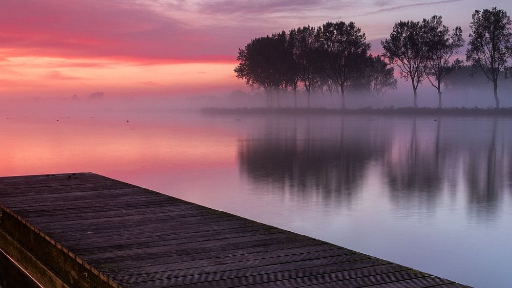 Het meer van Dirkshorn (Noord-Holland) lag er deze ochtend rustig bij, het was zo goed als windstil. Door de koude nacht tussen twee warme nazomer dagen ontstond er rondom zonsopkomst een laagje mist boven het water. In combinatie met de midden- en hoge bewolking, welke werden gekleurd door de opkomende zon, zorgden voor een prachtig ochtendritueel.