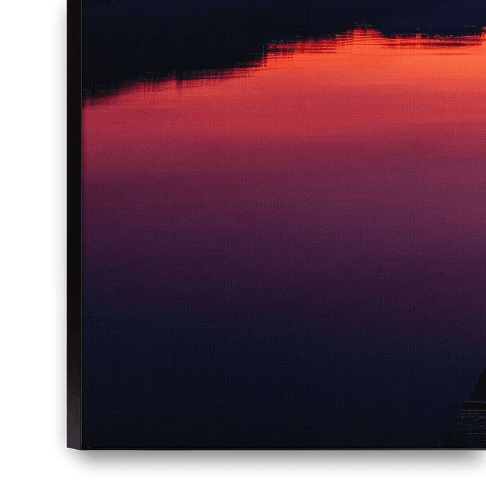 Ontsnap naar een serene wereld met dit prachtige ontwerp van een steiger die zich uitstrekt naar een glinsterend meer bij zonsondergang. Met diepe kleuren die variëren van warme oranje tinten tot kalmerende paarse en blauwe accenten, brengt dit kunstwerk rust en elegantie in elke ruimte. Perfect voor wie houdt van natuur en…