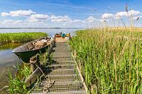 Steiger met vissersboot aan het Achterwasser bij Warthe op het eiland Us van Rico Ködder