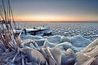 Steiger in het Ijsselmeer onder winterse omstandigheden