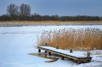 Koop de foto Steiger tussen riet met ijs en sneeuw van Peter Bolman op canvas, aluminium dibond, (ingelijste) fotoprint, behang en ArtFrame, op maat geprint in Fine-Art kwaliteit.