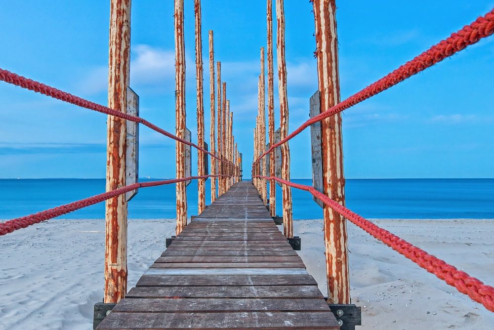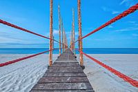 Een foto van de steiger naar de boot (de Vriendschap) tussen Texel en Vlieland. De foto straalt zeer veel rust en ruimte uit. De steiger is gebouwd nabij de vuurtoren van Texel.