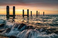 Tijdens een prachtige zonsopkomst het water 'stilgezet'met behulp van de sluitertijd het geeft een mooi effect op het water dat over de stenen gaat