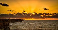 Koop de foto Steile kust met zonsondergang van VIDEOMUNDUM als print op canvas, aluminium dibond, (ingelijste) fotoprint, behang en ArtFrame. Voor jou op maat geprint in Fine-Art kwaliteit.
