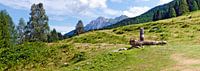 Panorama van de Steineckenalm met fontein in Karinthië, Oostenrijk